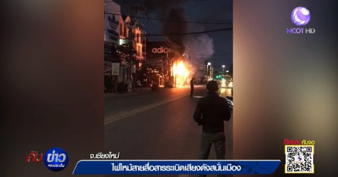 ไฟไหม้สายระบบสื่อสาร หน้าสำนักงานตำรวจภูธรภาค 5 กลางเมืองเชียงใหม่ นานเกือบ 30 นาที เจ้าหน้าที่เร่งดับไฟวุ่น