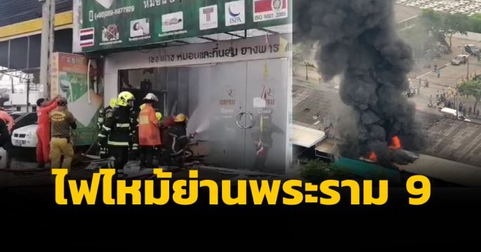 เกิดเหตุไฟไหม้อาคารพาณิชย์ย่านพระราม 9 เจ้าหน้าที่ระดมฉีดน้ำสกัดเพลิงนานกว่า 15 นาทีสามารถควบคุมเพลิงได้ เร่งหาสาเหตุ