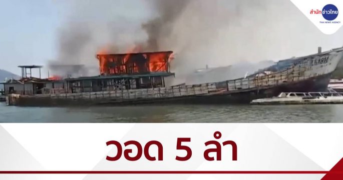 ไฟไหม้เรือเบ็ดราวทูน่า วอด 5 ลำ ขณะลอยลำกลางทะเลแหลมหงาเกาะสิเหร่ จ.ภูเก็ต ชาวบ้านเผยจอดลอยลำมากว่า 10 ปีแล้ว