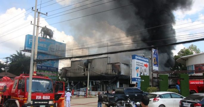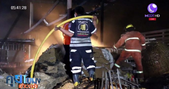 ไฟโหมโกดังเช่าเก็บเครื่องมืออุปกรณ์ทำความสะอาดนานเกือบชั่วโมงย่านกระทุ่มแบน-สมุทรสาคร เสียหายกว่า 5 ล้านบาท คนเฝ้าโกดังวัย 56 ปี ไฟลวกบาดเจ็บ