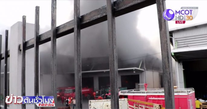 ไฟไหม้โกดังโรงงานบิลเลียน เอ็นเตอร์ไพรส์ ต.หนองขาม อ.ศรีราชา จ.ชลบุรี เจ้าหน้าที่ฉีดน้ำสกัดนานนับชั่วโมง สินค้าภายในโกดังเสียหายทั้งหมด เจ้าหน้าที่คาดสาเหตุเกิดจากไฟฟ้าลัดวงจร