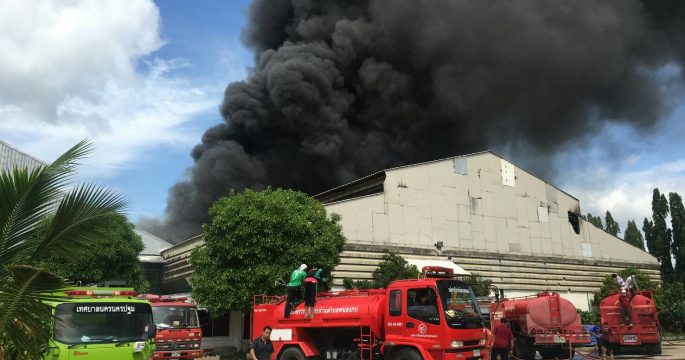 ดับเรียบร้อย ไฟโหมข้ามคืนโรงงานย่านสมุทรสาคร