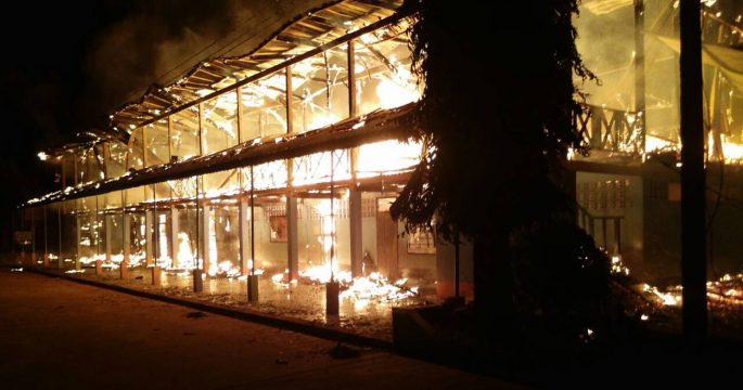 เพลิงไหม้อาคารเรียนไม้สักเก่าแก่อายุกว่า 60 ปี ของโรงเรียนบ้านแม่ปะเหนือ อ.แม่สอด จ.ตาก เสียหายทั้งหลัง แล้วลุกลามไหม้บ้านพักครูอีก 1 หลัง