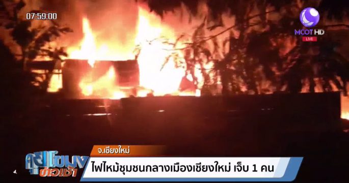 เกิดเหตุเพลิงไหม้ชุมชนแออัดกลางเมืองเชียงใหม่ เสียหาย 4 หลัง มีชาวบ้านบาดเจ็บสำลักควัน 1 คน สาเหตุคาดว่าเกิดจากไฟฟ้าลัดวงจร