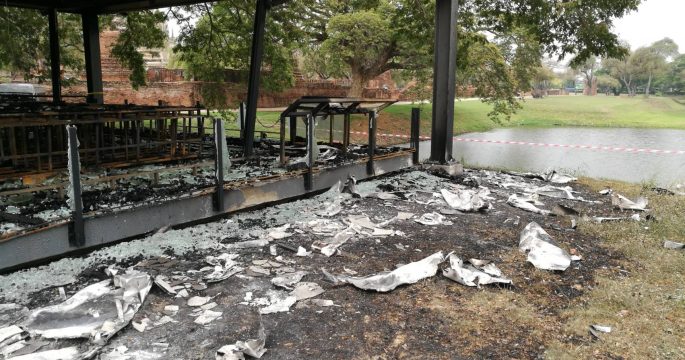 ไฟอาคารเรียนรู้พระราชวังหลวงแห่งกรุงศรีอยุธยา ข้างวัดพระศรีสรรเพชญ์ ภายในอุทยานประวัติศาสตร์พระนครศรีอยุธยา เจ้าหน้าที่ใช้เวลาไม่ถึง 30 นาที จึงควบคุมเพลิงไว้ได้