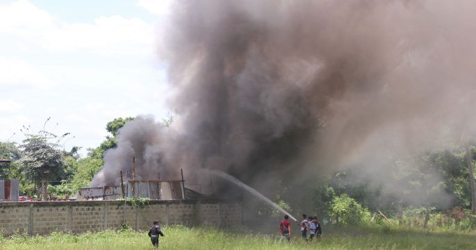 จนท.ลำปางระดมทั้งรถน้ำและรถโฟมสกัดไฟไหม้โรงงานรับซื้อของเก่า อ.เกาะคา ท่ามกลางความร้อนระอุและกลุ่มควันดำหนาแน่น