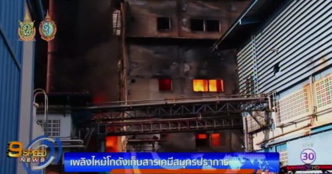 เจ้าหน้าที่ต้องใช้รถดับเพลิงกว่า 20 คัน สกัดเพลิงที่ลุกไหม้โกดังเก็บสารเคมี ย่านบางปลา สมุทรปราการ เพื่อไม่ให้ลุกลามไปโกดังข้างเคียงที่เก็บวัตถุไวไฟอีกนับสิบหลัง