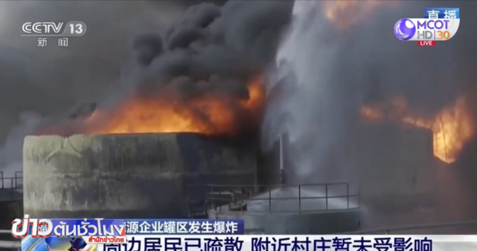 โรงงานผลิตเชื้อเพลิงชีวภาพของจีนระเบิด คนงานบาดเจ็บ 2 คน สูญหาย 2 คน แรงระเบิดส่งผลให้เกิดเพลิงไหม้รุนแรง ส่งกลุ่มควันสีดำลอยขึ้นสู่ท้องฟ้า