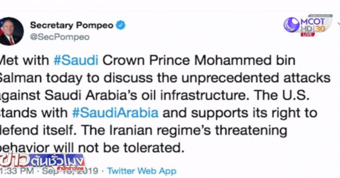 รมต.ต่างประเทศสหรัฐ เข้าเฝ้ามกุฎราชกุมารโมฮัมเหม็ด บิน ซัลมาน ของซาอุดีอาระเบีย ยืนยันสหรัฐจะอยู่เคียงข้างและสนับสนุนซาอุดีอาระเบียในการป้องกันตนเอง