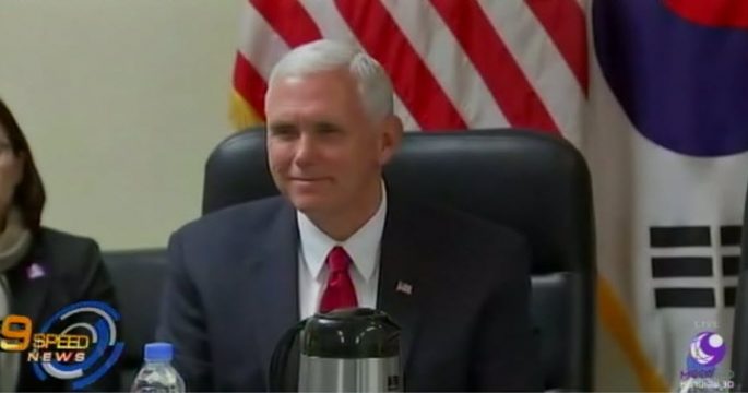 นายไมค์ เพนซ์ รองประธานาธิบดีสหรัฐ เดินทางเยือนฐานทัพแคมป์โบนิฟาส ในเกาหลีใต้ เพื่อพบปะกำลังพลสหรัฐ