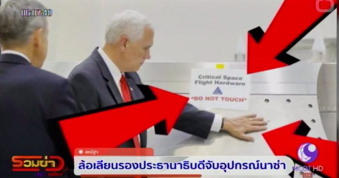 นายไมค์ เพนซ์ รองประธานาธิบดีสหรัฐ ถูกผู้ใช้สื่อสังคมออนไลน์จำนวนมากล้อเลียน หลังภาพที่เขายื่นมือออกไปจับอุปกรณ์ชิ้นสำคัญของนาซา ที่มีเครื่องหมายห้ามจับติดอยู่ ถูกเผยแพร่ออกไปอย่างรวดเร็ว