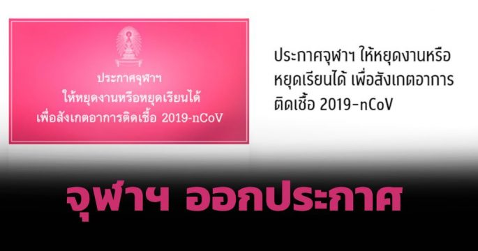 จุฬาฯออกประกาศหยุดเรียน-หยุดงาน ช่วงไวรัสโคโรนา