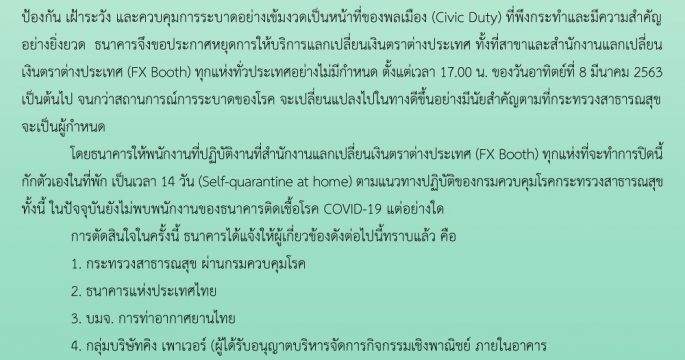 ธนาคารกสิกรไทย หยุดให้บริการแลกเปลี่ยนเงินตราต่างประเทศที่สาขาและสำนักงานแลกเปลี่ยนเงินตราต่างประเทศ