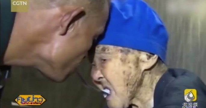 คลิปสุดซึ้ง ชายจีนยอดกตัญญูใช้ปากคาบช้อนป้อนข้าวแม่วัย 90 ปี แม้ตัวเองจะไร้แขนทั้งสองข้างตั้งแต่ 7 ขวบ