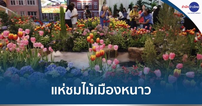 นักท่องเที่ยวแห่ชมดอกทิวลิปและไม้ดอกเมืองหนาว ซึ่งบานสะพรั่งอย่างสวยงามนับล้านดอกที่อุทยานหลวงราชพฤกษ์เชียงใหม่คึกคัก