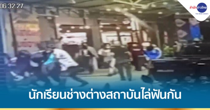 กลุ่มนักเรียนช่างต่างสถาบันไล่ฟันกันหน้าสถานที่จัดงานเทศกาลอาหาร จ.ฉะเชิงเทรา มีผู้ได้รับบาดเจ็บจากการถูกฟันและสะเก็ดระเบิดปิงปองหลายราย