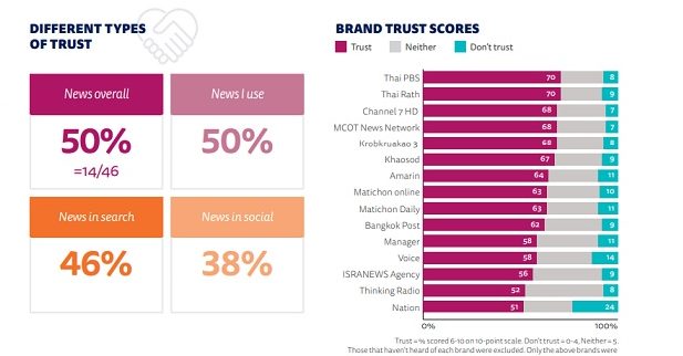 MCOT News Network ได้รับความไว้วางใจในแบรนด์ (Brand Trust Scores) เป็นอันดับ 4 จากผลสำรวจ Digital News Report 2021 โดยสถาบันรอยเตอร์ส ที่ให้ YouGov บริษัทวิจัยทางการตลาดและวิเคราะห์ข้อมูลด้านอินเตอร์เน็ต เป็นผู้ทำการสำรวจและเก็บข้อมูลเมื่อฃ่วงเดือนมกราคม-กุมภาพันธ์ 2564