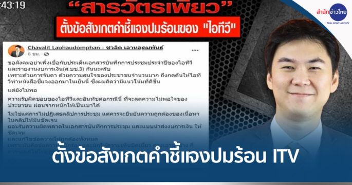 หลังไอทีวีชี้แจงปมการบันทึกรายงานการประชุมไม่ตรงกับคลิปวิดีโอขณะประชุม รวมถึงแบบนำส่งงบการเงินที่ยื่นต่อกรมพัฒนาธุรกิจการค้า และสำนักงานคณะกรรมการกำกับหลักทรัพย์และตลาดหลักทรัพย์ ไม่ตรงกับที่เผยแพร่ผ่านเว็บไซต์ ทำให้นักวิชาการหลายท่าน อย่าง “สฤณี-สารวัตรเพียว” ออกมาตั้งข้อสังเกตอย่างต่อเนื่อง