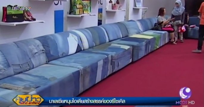 มาเลเซียจัดทำเก้าอี้โซฟายาวที่สุดของประเทศ ด้วยเศษผ้ายีนส์เหลือใช้ เพื่อกระตุ้นให้ผู้คนในสังคมเห็นความสำคัญของการนำวัสดุเหลือใช้รอบตัวมาประดิษฐ์ดัดแปลงให้เกิดประโยชน์