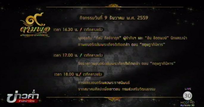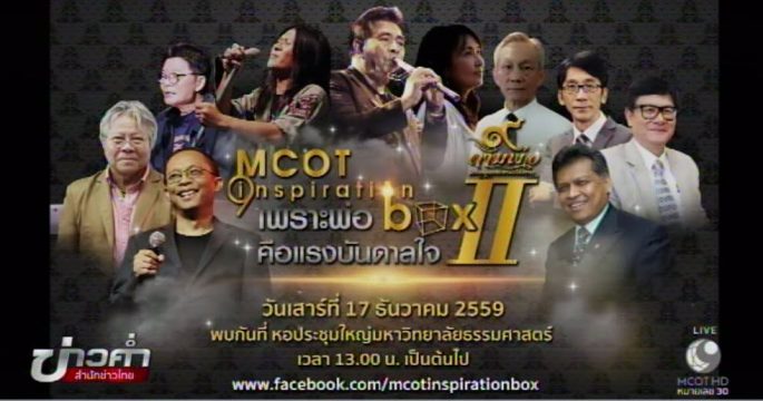 กิจกรรมงาน ๙ ตามพ่อ สานต่อพระราชปณิธาน วันพรุ่งนี้ เชิญชวนร่วมกิจกรรม TALK & MUSIC ๙ ตามพ่อ สานต่อพระราชปณิธาน MCOT INSPIRATION BOX ครั้งที่ 2