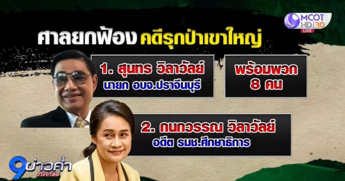 ศาลอาญาคดีทุจริตฯ ยกฟ้อง “สุนทร-กนกวรรณ” กับพวกรวม 10 คน คดีบุกรุกที่ดินป่าสงวนแห่งชาติเขาใหญ่