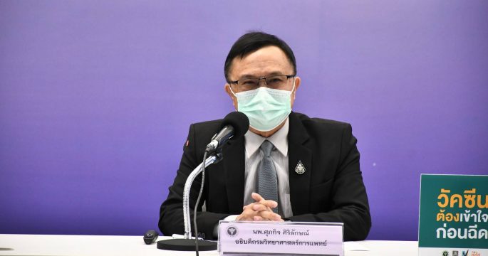 กรมวิทย์ฯ เผยคนไทยมีภาวะเกล็ดเลือดต่ำ ร่วมกับหลอดเลือดอุดตัน หลังได้รับวัคซีนเพียง 1 รายใน 5 ล้านคน พบน้อยกว่าชาติตะวันตกถึง 5-40 เท่า และยังรักษาได้ถ้าพบแพทย์ทันท่วงที