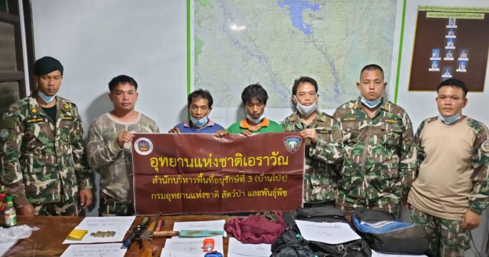 เจ้าหน้าที่กรมอุทยานฯ จับพรานพม่าลักลอบเข้าเมืองเพื่อจะมาล่าสัตว์ป่าในอุทยานแห่งชาติเอราวัณ จึงดำเนินคดีทั้งตามพ.ร.บ. อุทยานแห่งชาติและพ.ร.บ. อาวุธปืน