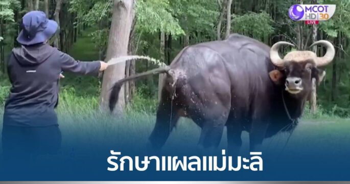 สัตวแพทย์ระดมทีมช่วยรักษา “แม่มะลิ” กระทิงเขาใหญ่เพศเมีย ตาบอดทั้งสองข้าง และถูกกระทิงตัวผู้ขวิดก้นเป็นแผลลึกข้างรูทวาร ทำให้เวลาขับถ่ายมีปัญหา