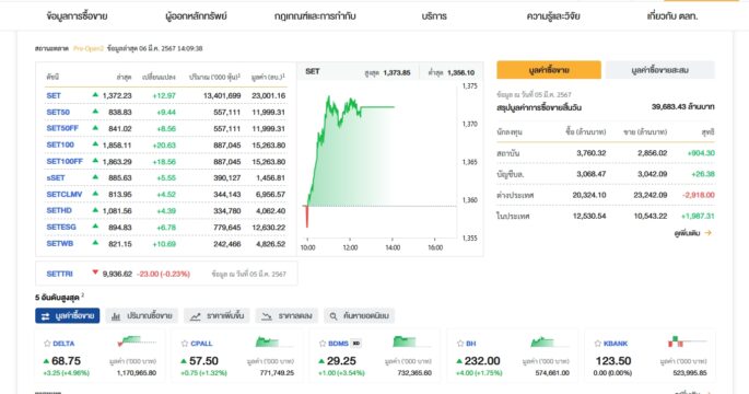 ดัชนีตลาดหลักทรัพย์ฯ ปิดช่วงเช้า 1,372.23 จุด เพิ่มขึ้น 12.97 จุด (+0.95%) มูลค่าซื้อขาย 21,876 ล้านบาท กลุ่มเครื่องดื่มคึกคักตอบรับอากาศร้อน ในขณะที่ AMARIN ราคาพุ่ง กลุ่มสิริวัฒนภักดี เข้าซื้อเพิ่ม