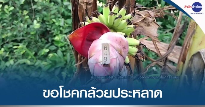 กล้วยประหลาด ปลีแดงชี้ฟ้า ชาวบ้านส่องหาเลขเด็ด