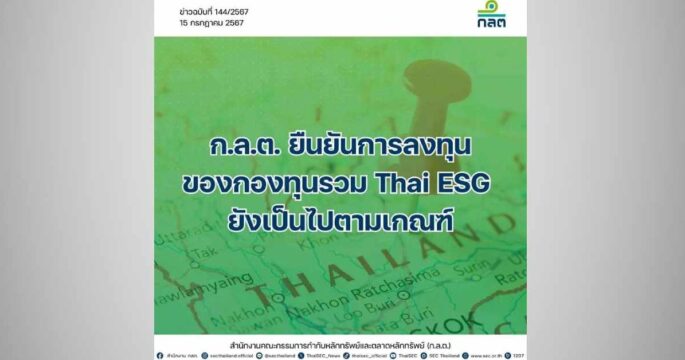ก.ล.ต. ยันการลงทุนของกองทุนรวมไทยเพื่อความยั่งยืน (กองทุนรวม Thai ESG) ทุกกองทุนยังเป็นไปตามเกณฑ์การกระจายการลงทุน มีสัดส่วนการลงทุนในหุ้นบริษัท พลังงานบริสุทธิ์ จำกัด (มหาชน) (EA) ที่ผู้บริหารบริษัทถูกกล่าวโทษ เพียงร้อยละ 0.35 ของมูลค่าทรัพย์สินสุทธิ (NAV) ของกองทุนรวม Thai ESG ทั้งหมด