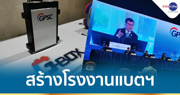GPSC ศึกษาเตรียมทุ่ม 5 พันล้าน สร้างโรงงานแบตฯ แห่งใหม่ หลังความนิยมทั้งอีวีและใช้กักเก็บพลังงานพุ่ง พร้อมร่วมทุนขยายกำลังผลิตไฟฟ้า ตามแผนบริษัทแม่ เล็ง 4 พื้นที่เป้าหมาย ไต้หวัน, อินเดีย, เวียดนาม, จีน