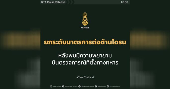 กทม. 2 ส.ค.-กองทัพบกบูรณาการทุกภาคส่วน ยกระดับมาตรการรับมือภัยคุกคามจากโดรน หลังพบมีความพยายามบินตรวจการณ์ที่ตั้งทางทหาร ตามที่สำนักงานการบินพลเรือนแห่งประเทศไทย ได้ออกประกาศ เมื่อวันที่ 29 กรกฎาคม พ.ศ.2568 เรื่องห้ามมิให้ผู้ใดบังคับหรือปล่อยอากาศยานซึ่งไม่มีนักบิน หรือ “โดรน” ที่ควบคุมการบินจากภายนอก, ทุกวัตถุประสงค์การใช้งาน, และทุกพื้นที่ทั่วราชอาณาจักรโดยเด็ดขาด เพื่อป้องกันผลกระทบต่อความมั่นคงของประเทศจากสถานการณ์ชายแดนไทย–กัมพูชาในปัจจุบัน ทั้งนี้ เจ้าหน้าที่ฝ่ายทหารหรือหน่วยงานด้านความมั่นคงที่ได้รับมอบหมาย มีอำนาจในการใช้ระบบต่อต้านโดรน (Anti-Drone System) รวมถึงสามารถดำเนินการทำลายโดรนจากภาคพื้นดินได้ทันที ในการนี้ พลเอก พนา แคล้วปลอดทุกข์ ผู้บัญชาการศูนย์ปฏิบัติการกองทัพบก/รองผู้อำนวยการรักษาความมั่นคงภายในราชอาณาจักร ได้สั่งการให้ศูนย์ปฏิบัติการกองทัพภาคที่ 1 ถึง 4 และกองอำนวยการรักษาความมั่นคงภายในภาค 1 ถึง 4 ดำเนินมาตรการตามแนวทางดังต่อไปนี้ •ให้กองอำนวยการรักษาความมั่นคงภายในจังหวัด โดยมีรองผู้อำนวยการรักษาความมั่นคงภายในจังหวัด (ฝ่ายทหาร) เป็นผู้รับผิดชอบในการหารือและประสานการปฏิบัติกับส่วนราชการ หน่วยงาน และภาคเอกชนที่เกี่ยวข้อง โดยให้ผู้อำนวยการรักษาความมั่นคงภายในภาคเป็นผู้ทำหน้าที่ควบคุมและวางแผนภาพรวมในการป้องกันและต่อต้านการใช้โดรนไม่ทราบฝ่าย •ให้บูรณาการร่วมกับหน่วยงานในพื้นที่ ได้แก่ จังหวัด ตำรวจภูธรจังหวัด หน่วยงานความมั่นคง ภาคเอกชน และส่วนราชการที่เกี่ยวข้อง พร้อมทั้งจัดตั้งชุดเคลื่อนที่เร็ว ประกอบด้วยกำลังจากฝ่ายพลเรือน ตลอดจนตำรวจจากสถานีตำรวจภูธร […]