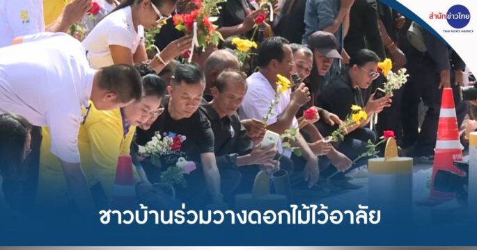 ชาวบ้านร่วมวางดอกไม้ไว้อาลัยเหตุกัมพูชายิงจรวดใส่ร้านสะดวกซื้อ