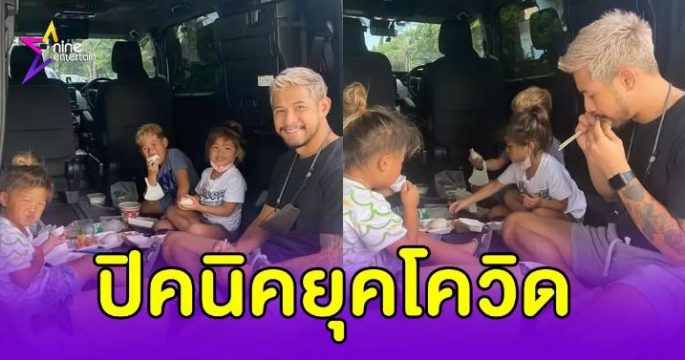“กาย-ฮารุ” พาลูกทั้งสามคน เปลี่ยนบรรยากาศ นั่งกินมื้อเที่ยงท้ายรถ