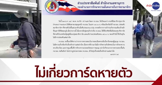 กอ.รมน. ยันไม่เกี่ยวการ์ดผู้ชุมนุมหายตัว