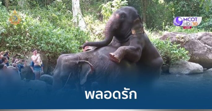 ล่องแก่งคลองสองแพรก ตื่นตาภาพหาดูยาก ช้างพลอดรัก