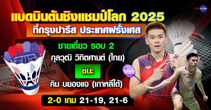 “วิว กุลวุฒิ” ทะลุรอบ 3 แบดฯ ชิงแชมป์โลก 2025
