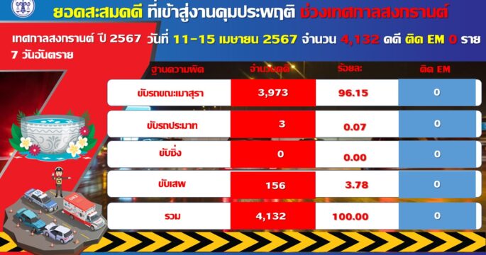 ยอดคุมประพฤติคดีเมาขับสงกรานต์วันแรก 276 คดี