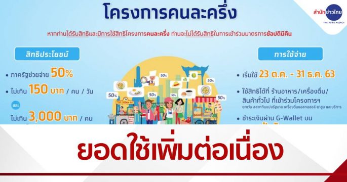 โครงการ “คนละครึ่ง” ยังได้รับความนิยมต่อเนื่อง ร้านค้าต่างๆ บอกเป็นเสียงเดียวกันว่า ยอดขายเพิ่มขึ้น และอยากให้รัฐบาลขยายระยะเวลาโครงการออกไปอีก เช่นเดียวกับประชาชนที่ใช้สิทธิก็ต้องการให้ขยายโครงการเช่นกัน
