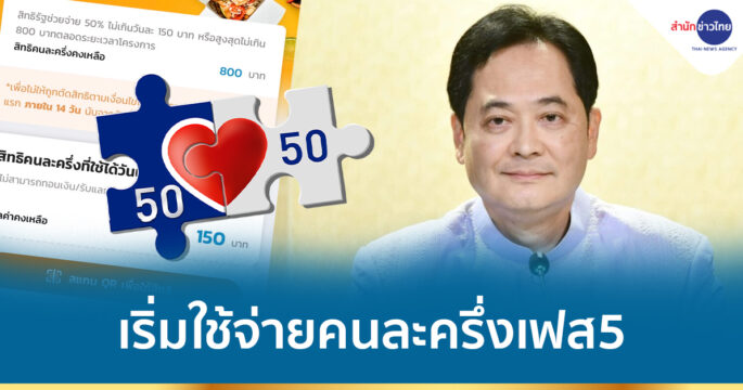 โฆษกรัฐบาลเผย รัฐบาลชวนประชาชน ใช้วงเงินสิทธิ “คนละครึ่งเฟส 5” รัฐร่วมจ่ายร้อยละ 50 ไม่เกิน 150 บาท/คน/วัน ตั้งแต่วันนี้ถึง 31 ต.ค. 65