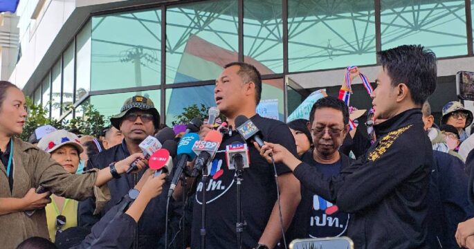 ม็อบ คปท. บุกประชิดที่ประชุม GBC ยื่นหนังสือแสดงจุดยืนคนไทยไม่เสียดินแดน ลั่นหากผลเจรจาพื้นที่ทับซ้อนไทย-กัมพูชา วันนี้เสียเปรียบ “ออกญากลาโหมภูมิธรรม” เตรียมตัวไว้เลย