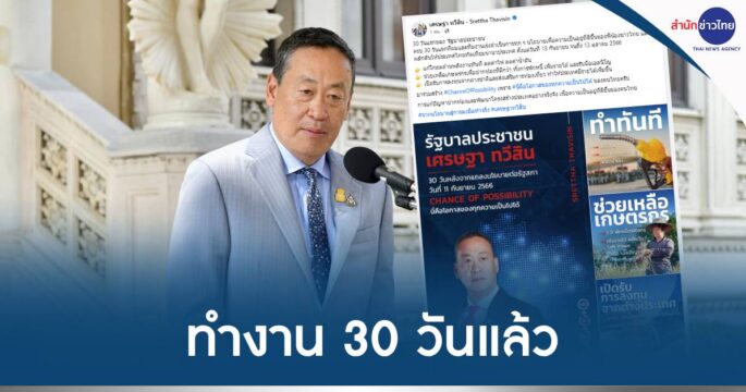 นายกฯ เศรษฐา โพสต์ทำงาน 30 วันแล้ว เร่งแก้ปัญหาวิกฤติเพื่อความเป็นอยู่ที่ดีขึ้น