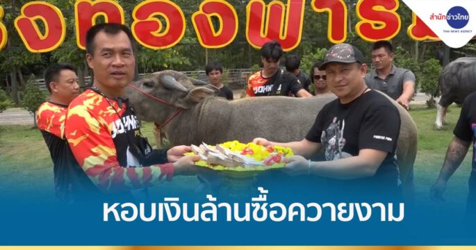 “เสี่ยหน่อย” เห็นแล้วชอบ หอบเงินเกือบ 4 ล้าน สู่ขอ “เจ้าบุญเติม” เพศผู้ อายุ 22 เดือน ควายงามพันธุ์ดีลักษณะเด่น ถูกต้องตามตำราควายไทย