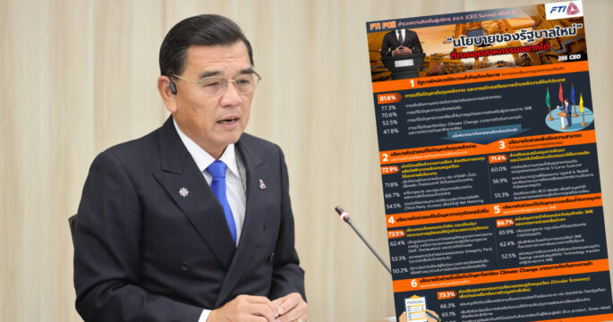 ส.อ.ท. เปิดผลสำรวจ FTI Poll เดือน ก.พ.66 โดยเอกชนหวังรัฐบาลใหม่ให้ความสำคัญนโยบาย 5 ด้าน แก้ปัญหาต้นทุนพลังงาน เพิ่มขีดความสามารถในการแข่งขัน เข้มแก้ปัญหาทุจริต ลดเหลื่อมล้ำภาคธุรกิจ และส่งเสริมนโยบายลดโลกร้อน