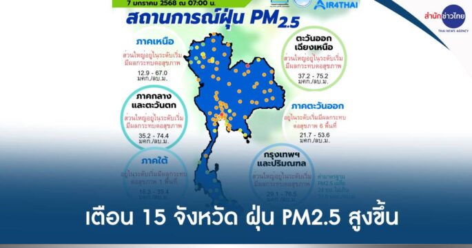 เตือน 7-10 ม.ค. ฝุ่น PM2.5 สูงขึ้น แจ้ง 15 จังหวัดงดเผา