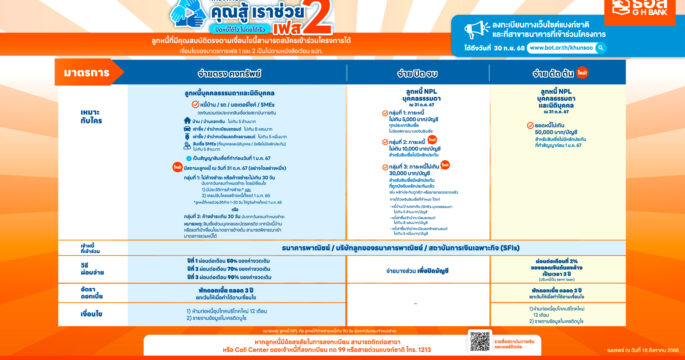 กรุงเทพฯ 18 ส.ค. – ธอส. เดินหน้าสานต่อโครงการคุณสู้ เราช่วย เฟส 2 ขยายระยะเวลาลงทะเบียน พร้อมเพิ่มคุณสมบัติ ช่วยเหลือลูกค้ากลุ่มเปราะบางให้ครอบคลุมมากขึ้น หลังมีลูกค้าเข้าร่วมโครงการในเฟสแรกแล้วกว่า 97,000 บัญชี นายกมลภพ วีระพละ กรรมการผู้จัดการธนาคารอาคารสงเคราะห์ (ธอส.) เปิดเผยว่า ธอส. ดำเนินการตามนโยบายกระทรวงการคลัง และธนาคารแห่งประเทศไทย (ธปท.) เปิดให้ลูกค้าลงทะเบียนเข้าร่วมโครงการคุณสู้ เราช่วย ตั้งแต่ปี 2567 ที่ผ่านมา โดยปัจจุบันมีลูกค้าลงทะเบียนเข้าร่วมโครงการแล้วกว่า 97,000 บัญชี ธอส. จึงเดินหน้าสานต่อ “โครงการคุณสู้ เราช่วย” เฟส 2 โดยเพิ่มคุณสมบัติลูกค้าเข้าร่วมโครงการ และขยายระยะเวลาให้ลูกค้าเข้าร่วมโครงการถึงวันที่ 30 กันยายน 2568 สำหรับลูกค้าที่มีวงเงินสินเชื่อไม่เกิน 5 ล้านบาท ทำสัญญาก่อนวันที่ 1 มกราคม 2567 ซึ่งเป็นกลุ่มลูกหนี้ที่ไม่ค้างชำระหรือค้างชำระไม่เกิน 30 วัน นับจากวันครบกำหนดชำระ โดยมีประวัติการค้างชำระ […]