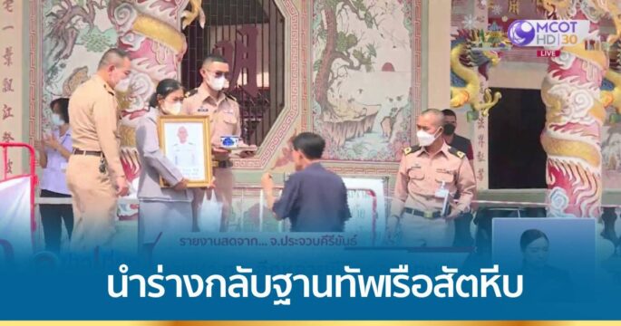 เจ้าหน้าที่เตรียมเคลื่อนย้ายร่าง 6 กำลังพลเรือหลวงสุโขทัย กลับฐานทัพเรือสัตหีบ ขยายพื้นที่ค้นหา 23 กำลังพลที่สูญหาย