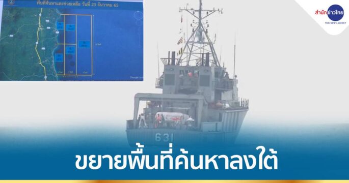 เดินหน้าต่อ ไม่ท้อ ขยายพื้นที่การค้นหา 23 กำลังพลเรือหลวงสุโขทัยที่สูญหาย โดยลงไปทางใต้มากขึ้นถึงสุราษฎร์ธานี พร้อมกำลังสมทบทั้งทางเรือ ใต้น้ำ อากาศยาน