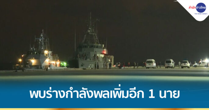 โฆษกกองทัพเรือ ยืนยันพบร่างกำลังพลเพิ่มอีก 1 นาย ใกล้จุดเรือหลวงสุโขทัยอับปาง เรือหลวงบางระจันนำขึ้นฝั่งบางสะพานเรียบร้อยแล้ว ก่อนส่งพิสูจน์อัตลักษณ์บุคคล